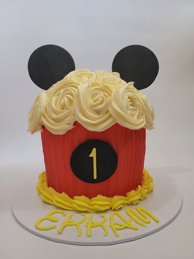Red, yellow and black buttercream cake with handmade sugar ears. Customise your design by choosing your sponge flavour and fillings.